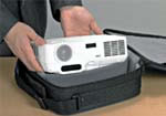 A portable, compact body with sufficient brightness for large screen presentations in large conference rooms. |