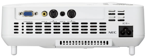 The body weight has been reduced by introducing magnesium housing and employing a new cooling method combining a fan and a small-sized pump which has been developed by NEC. This projector achieves the weight of 1.6 kg with the high brightness 2300 ANSI lumens*, including a built-in speaker that was not available on the previous model.